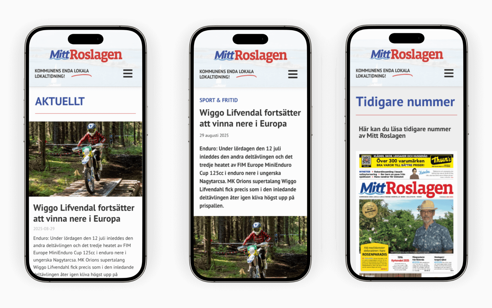 Resultatet är en framtidssäkrad, lättskött och snygg hemsida som lyfter Mitt Roslagen online – och gör det enklare än någonsin att nå ut till sina läsare digitalt.